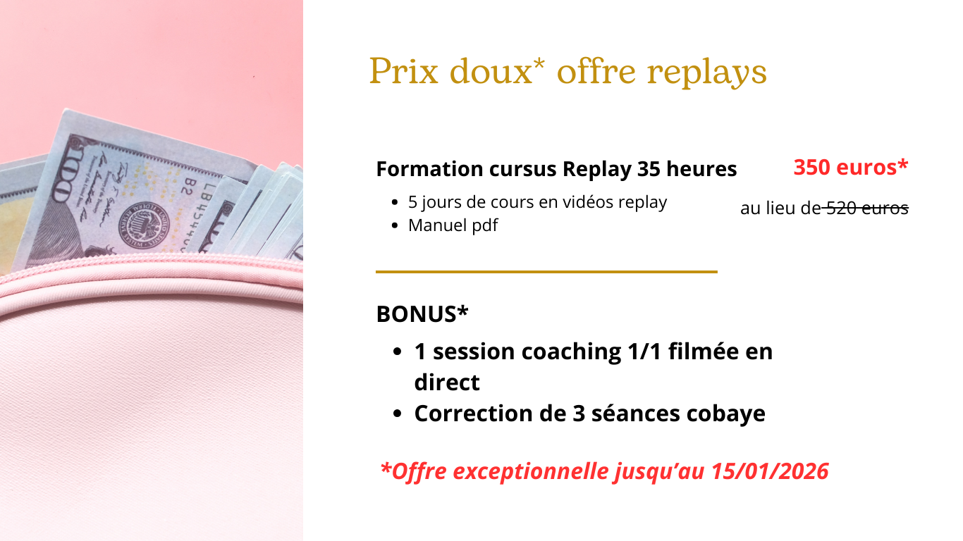 Vous pouvez recevoir l’enseignement en replay et ensuite participer aux révisions et à la pratique en présentiel.